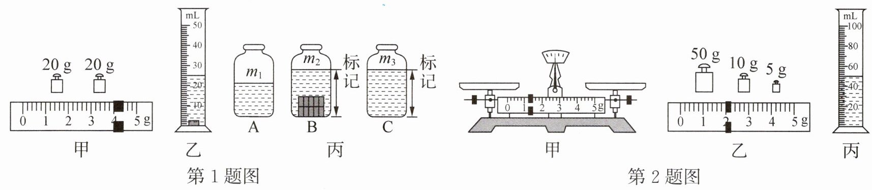 (1)将托盘天平放在水平桌面上,调节天平使其横梁水平平衡后如图甲所示,调平过程中存在的错误是