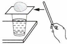 见解析 解析:用木棒迅速击打鸡蛋下的硬纸板时,鸡蛋由于惯性保持原来的静止状态,没有随纸板飞出;鸡蛋由于受到重力会落到装水的杯子中。
