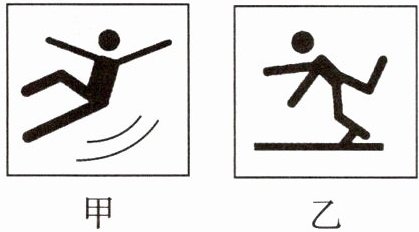A.甲是当心绊倒,乙是小心地滑