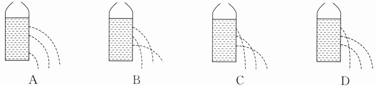 【变式1】(2025·广西南宁期中)有一个塑料瓶,在侧壁上用锥子戳了三个洞,向容器中倒入水后,水从小洞中喷出,下列图示情景正确的是(