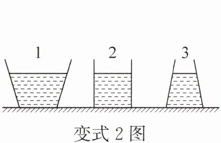 【变式2】(2025·重庆期中)如图所示,舸舸同学选了三个质量相等、形状不同、底面积相同的容器,它们都装有相同高度的同种液体。则容器底部受到的液体压力$ F_{1} $、$ F_{2} $、$ F_{3} $的大小关系是