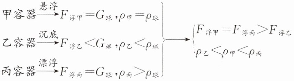 【思路分析】牙膏瓶悬浮在水中,$F_{浮}=G$;向水中加食盐,液体密度增大,当牙膏瓶浸入液体的体积不变,牙膏瓶受到的浮力变大,$F_{浮}>G$;将牙膏瓶捏扁,体积变小,受到的浮力变小,小于牙膏瓶的重力.