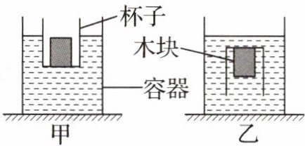 D.将乙容器中的杯子轻轻向下推动少许,杯子和木块将沉到容器底