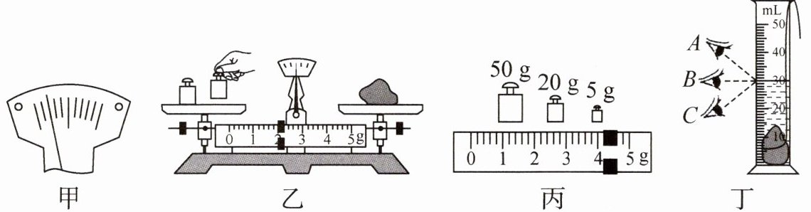 (4)小滨在量筒内倒入 20 mL 的水,放入金属块后量筒内水面如图丁所示,量筒读数时视线正确的是