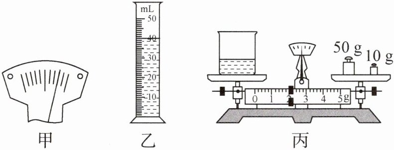 (3)将烧杯中部分牛奶倒入量筒,如图乙,再测出烧杯和剩余牛奶的质量,如图丙。