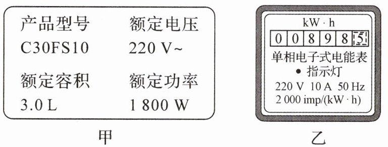 由图乙知电能表参数为$2000imp/(kW·h)$,则指示灯闪烁次数$n = 0.1215kW·h×2000imp/(kW·h)=243imp$。