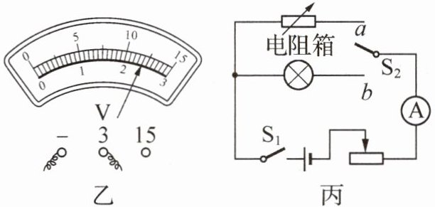 (4) 利用如图丙所示的电路,测出了另一只已知额定电流为I₁的小灯泡的额定功率,请完成实验步骤: