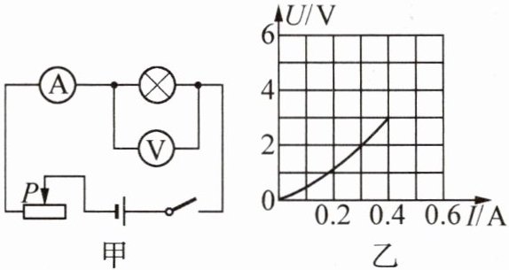 B. 小灯泡标有“2V”字样,由图乙知,当 $U=2V$ 时,$I=0.3A$,则 $P=UI=2V×0.3A=0.6W$,B正确。