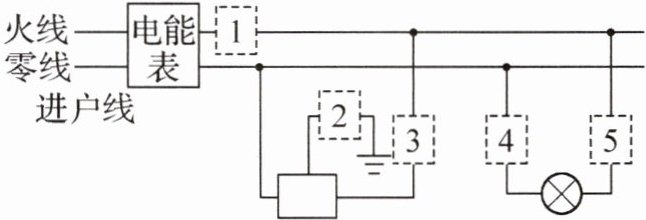 解:家庭电路中,总开关应接在电能表之后,控制整个电路的通断,开关1合理;开关2接在零线与用电器之间,若断开会使用电器仍与火线相连,存在安全隐患,必须常闭;开关3为地线开关,地线应始终接地,开关3必须常闭;开关4与灯泡串联接在零线中,断开时灯泡仍带电,应接在火线中,此处开关4必须常闭;开关5接在火线与灯泡之间,控制灯泡通断,合理。故必须常闭无需设置的开关是2、4。