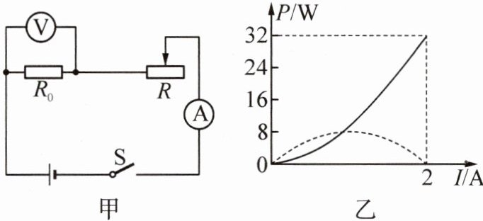 (选填“R”或“R₀”)的功率与电流的关系;R₀的阻值为