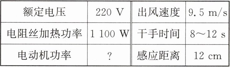 (2)热风干手时,通过感应开关$S_1$的电流是$7A$,电动机的功率是多少?