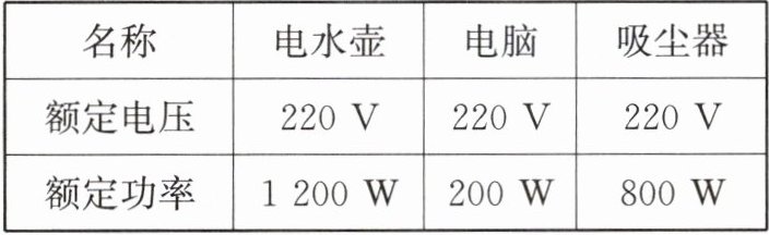 (3)下表为他家的三个用电器,使用时间相同的情况下,耗电量从大到小依次是