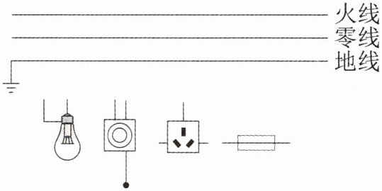 19. 如图所示为某家庭电路的部分示意图,请将各元件正确接入电路(要求:开关只控制电灯,三孔插座自带熔断器)。