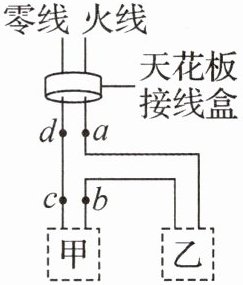 ;若发现电灯不亮,使用测电笔接触 $ a $、$ b $、$ c $ 三点时测电笔的氖管均发光,接触 $ d $ 点时测电笔的氖管不发光,则该电路的故障为