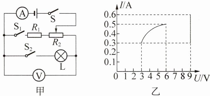 $ \mathrm{V} $;用电阻 $ R_{3} $ 替换 $ R_{1} $、$ R_{2} $ 中的某一个,闭合开关 $ \mathrm{S}_{1} $、断开 $ \mathrm{S}_{2} $,电压表示数为 $ U_{2} $,且 $ U_{2} $ 比 $ U_{1} $ 增加了 $ 3 \, \mathrm{V} $,若电路的总功率为 $ P_{2} $,则 $ P_{2} = $_________$ \mathrm{W} $.