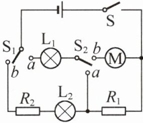 1. 设电源电压为$U$,闭合$S_1$、断开$S_2$时,$R_1$与$R_2$串联,电压表测$R_1$两端电压$U_1$,则$P_1=\frac{U_1^2}{R_1}=0.4\,\mathrm{W}$。开关$S_1$、$S_2$都闭合时,$R_2$被短路,电压表测电源电压$U=5U_1$。串联时,$U_2=U - U_1=4U_1$,电流$I=\frac{U_2}{R_2}=\frac{4U_1}{40\,\Omega}=\frac{U_1}{10\,\Omega}$,又$I=\frac{U_1}{R_1}$,故$R_1=10\,\Omega$。由$0.4\,\mathrm{W}=\frac{U_1^2}{10\,\Omega}$,得$U_1=2\,\mathrm{V}$,$U=5U_1=10\,\mathrm{V}$。