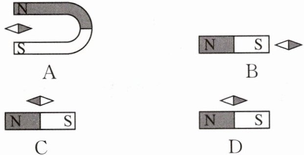 5. 下列图中,小磁针灰色的一端表示N极。将小磁针放在磁体周围,它们静止不动时,N极指向正确的是(
