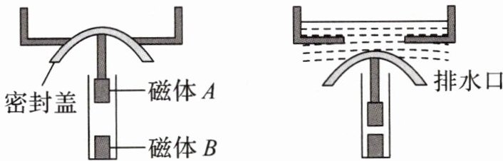 3. 如图所示是一种“磁悬浮地漏”的工作原理图,当密封盖上方无水时,在磁体B的作用下,磁体A将密封盖顶起。若磁体A下端为N极,则磁体B上端为