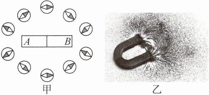 (2)小美用铁屑探究磁体周围的磁场如图乙所示.