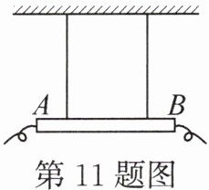 11. 如图所示,用两根橡皮筋悬挂的均匀金属棒水平处于磁场中,当棒中通以由 A 到 B 方向的电流时,金属棒静止,橡皮筋都刚好处于松弛状态(导线对金属棒的作用力忽略不计),此时金属棒受到的磁场力方向为