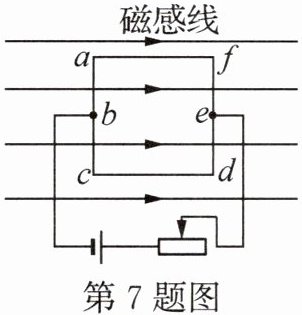 7. 矩形铜线框在某磁场中的位置如图所示,ab、bc、ed 和 fe 段都受到该磁场的作用力,则受到的作用力方向相同的两段是(