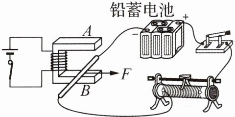 9. 在研究“通电导线在磁场中受到力的作用”时,用 U 形电磁铁替代磁体完成实验,如图所示. 闭合开关,导线受到水平向右的力. 下列说法正确的是(