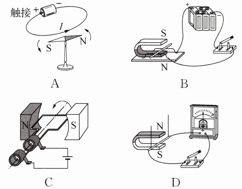 1. (2025·山东)在青岛港的全自动智能化码头,自动导引车经过布置在地上的磁钉时,会产生感应电流,进而实现精准定位.以下实验能揭示此原理的是(