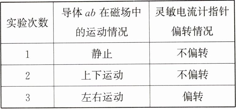(1)闭合开关后,观察各种情况下灵敏电流计指针偏转情况,将实验现象记录在表格中.分析可知:闭合电路中的一部分导体在磁场中做