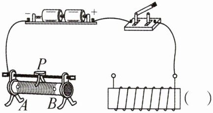 10. (2025·四川凉山)如图所示,请用笔画线代替导线将电路连接完整,并在括号中用符号标出螺线管的磁极(要求:闭合开关,向左移动滑片 P,螺线管磁性变强).