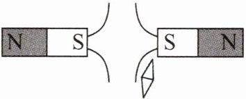 2. (2025·湖南怀化二模)两个条形磁体相互靠近时,请标出图中所有磁感线的方向和小磁针的 N 极(把 N 极涂灰并标上字母).