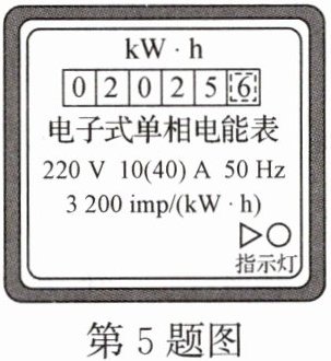 5. (2025·江苏宿迁二模)如图所示是小明家的电能表,他家同时使用的用电器总功率不能超过