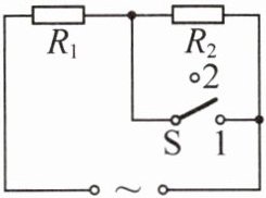 解:当开关S接“1”挡时,电路为R₁的简单电路;接“2”挡时,R₁与R₂串联。根据串联电路电阻特点,串联总电阻大于各分电阻,由$P = \frac{U^2}{R}$可知,电压U一定时,电阻越小,功率越大。高温烧煮需要大功率,此时开关接“1”挡(只有R₁接入,电阻小,功率大);焖饭、保温需要小功率,此时开关接“2”挡(R₁与R₂串联,电阻大,功率小)。故做饭过程中,开关S先在“1”挡,后在“2”挡。