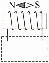 12. (2025·江苏苏州模拟)如图所示,将电磁铁连入电路中(在虚线框内完成,器材自选).要求:① 电磁铁磁性有无可以控制;② 能改变电磁铁磁性的强弱;③ 电路接通后使小磁针静止时在如图所示的位置.