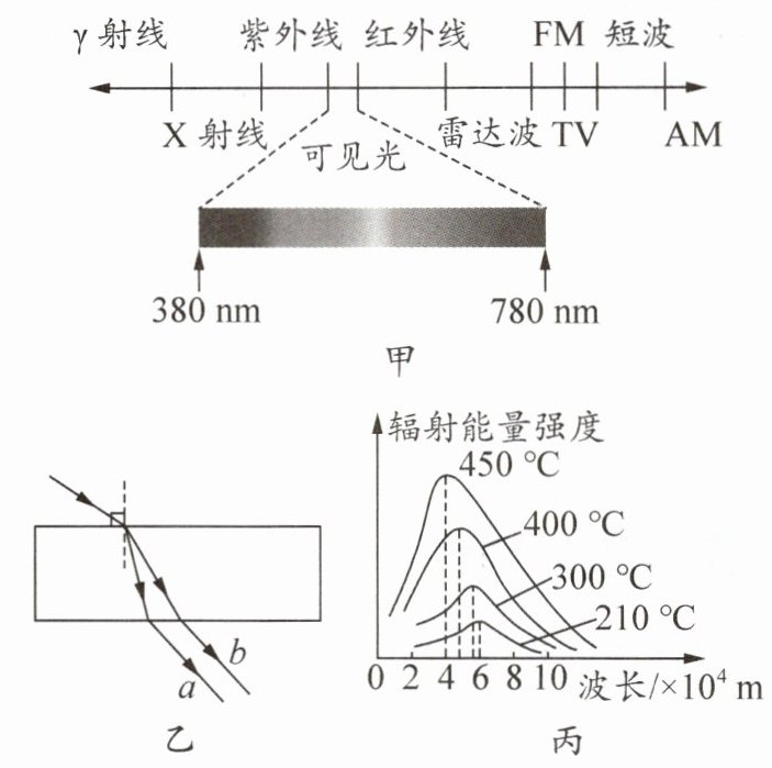 (5)如图丙所示,关于物体的红外辐射能量分布与波长、温度的关系,下列说法错误的是