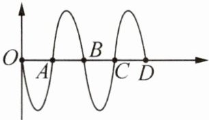 4. (2025·山东济宁一模)科学研究发现,用特定波长的红光持续照射人体背部15min,可明显刺激人体线粒体,降低血糖水平.该红光的波形图如图所示,已知OA=AB=BC=CD=335nm,则该红光的波长为