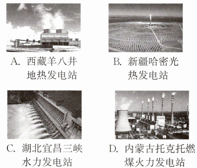 2. (2025·北京模拟)如图所示,全国各地分布着各种不同类型的发电站,它们在发电过程中,利用不可再生能源发电的是(