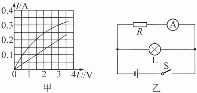 解:由图乙知,R与L并联,电流表测R支路电流。