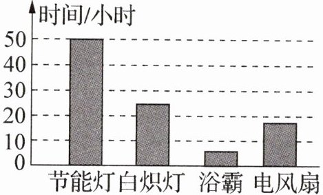 B. 由$P = \frac{W}{t}$,$W=1kW· h$,浴霸工作时间最短,$P_{浴霸}$最大,由$I = \frac{P}{U}$,$I_{浴霸}$最大,B错误。