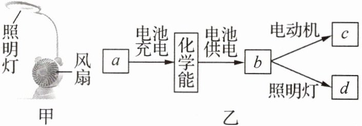 7. 如图甲是某型号可充电台灯风扇,图乙是台灯风扇经历充电和工作时的主要能量流向图.下列说法正确的是(