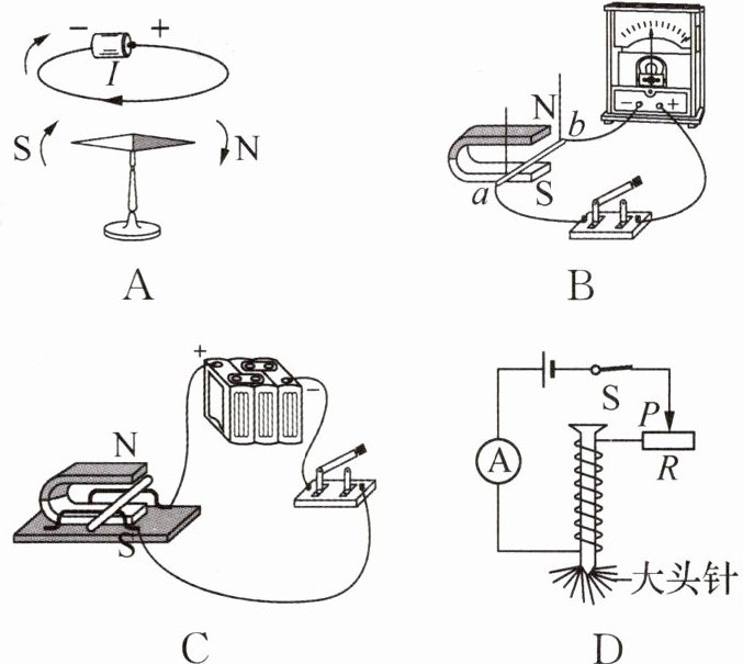 4. (2025·湖北模拟)普通汽车在行驶中刹车和下坡会浪费掉很多能源,还会因长时间踩刹车导致刹车盘过热,进而可能导致刹车失灵. 某款新能源车“动能回收技术”反向利用汽车的动能来发电给电池充电,达到增加续航里程和减少刹车片磨损的目的. 下列四图能反映新能源汽车“动能回收技术”原理的是(