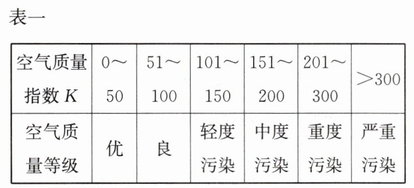 【项目导引】资料显示空气质量等级是按照空气质量指数 K 划分的,如表一所示.