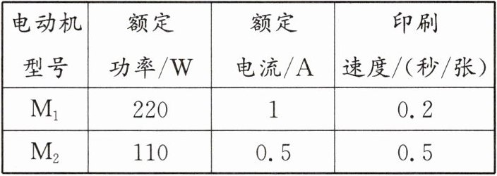 (2)根据电动机M₁、M₂的规格判断,下列关于速印机的说法正确的是