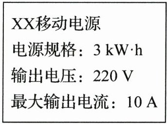 (2025·山东)某商家销售的移动电源相当于大型“充电宝”,其铭牌如图所示.顾客咨询:“该移动电源可以供 2.5 kW 的用电器正常工作吗?”客服回复:“没问题,这是 3 kW·h 的,3 kW 的用电器都可以正常使用.”该客服(