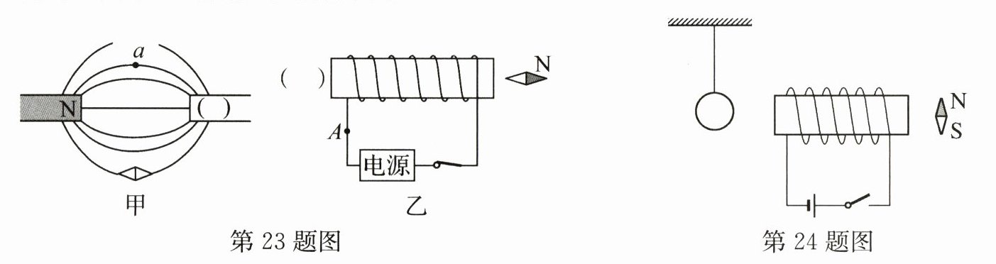 答案:24.(1)受到地磁场的作用 (2)磁场 吸引 (3)保持静止 (4)将电源的正、负极对调
