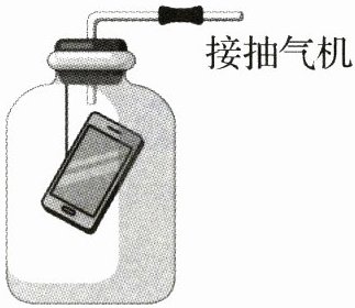 在密封的透明玻璃瓶内放了一个处于待机状态的手机,用另一个手机拨打里面的手机,同时看到手机屏幕上显示的来电号码.接着用抽气机将玻璃瓶内的空气尽可能抽去,继续拨打里面的手机,虽然听不到玻璃瓶内的手机铃声,但仍能看到手机屏幕上显示的来电号码.