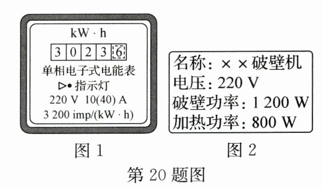kW·h,小明家破壁机的参数如图2所示,仅接通家中破壁机的破壁挡,观察到通电1min电能表的指示灯闪烁60次,则家中的实际电压