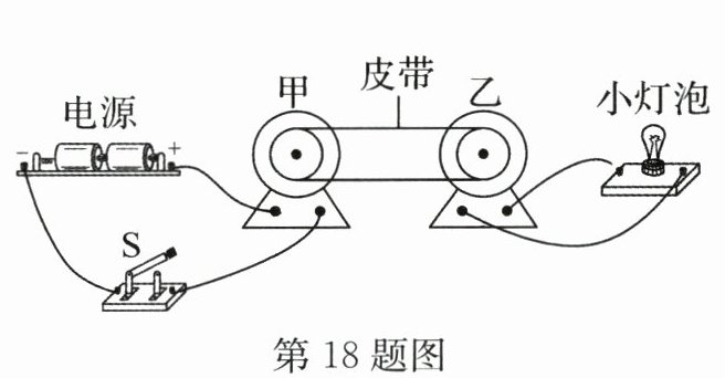 科学思维 小亮在学习了“电和磁”的知识后,用甲、乙两个直流电动机设计了如图所示的装置,闭合开关S后甲开始转动,小灯泡发光。在此过程中,将电能转化为机械能的装置是
