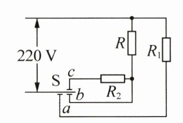 27. (12分)(2025·江苏宿迁三模)如图所示是家用电饭煲的原理图,它有加热、保温的功能。R、R₁和R₂都是发热电阻,R上标有“220V 605W”,R₁=880Ω,R₂=162Ω。加热时,按下温控开关S与a、b接触,当达到一定温度时,温控开关S自动跳接到c,使电饭煲处于保温状态。则: