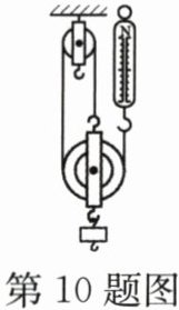 10. (无锡梁溪二模)小成在实验室组装如图所示的滑轮组进行实验探究,实验过程如下:先测出动滑轮所受的重力为 0.25 N,再使用组装好的滑轮组在 10 s 内将 1 N 的钩码竖直匀速提升 20 cm,此过程中弹簧测力计的示数为 0.5 N.下列说法正确的是