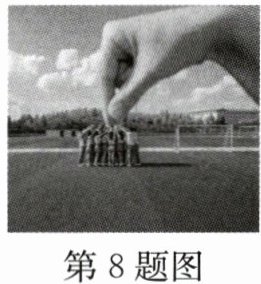 8. (苏州吴江一模)如图所示是一张创意照片,利用视觉错位一次拍摄而成.在拍摄过程中,下列说法正确的是